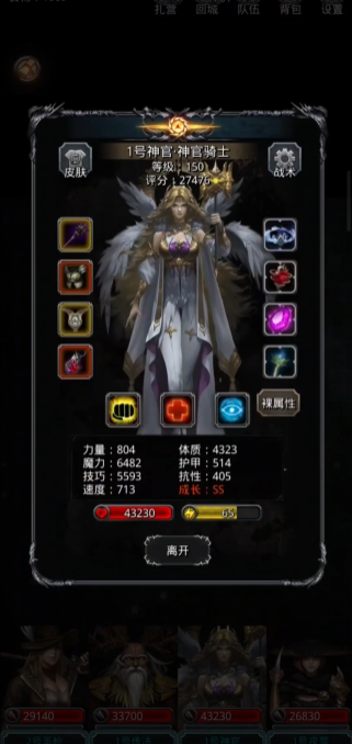 推荐使用一晕三奶的阵容,两个祭祀一个法师比较理想,祭祀奶量足,法师能加技巧。每个人都得带上古神免疫头盔和龙虾护手,前者通过任务获得,后者在图4掉落,蓝色品质就够用。剑圣的技巧和速度要尽量堆高,虽然有时候还是会miss,但只要奶量够就能稳住血线。
