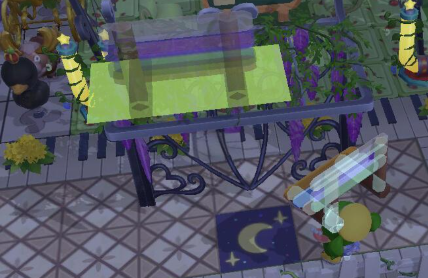 打造多层空中景观也很简单,只要在现有的花架上再叠加一层花架,然后重复底部放置圆石板和地砖的操作就行。原理就是利用花架垂下来的藤蔓形成的隐形支撑面,这种设计真是太巧妙了。记得大于1×1的大型家具悬浮后可以直接移动,而小家具可能会连带移动底座,这时候就需要重新调整位置啦。虽然这个方法很有趣,但要注意每次悬浮前都要检查家具是否完全对齐格子。空中摆放虽然好看,但也要考虑整体家园的风格协调性,太多悬浮物品可能会显得杂乱。
