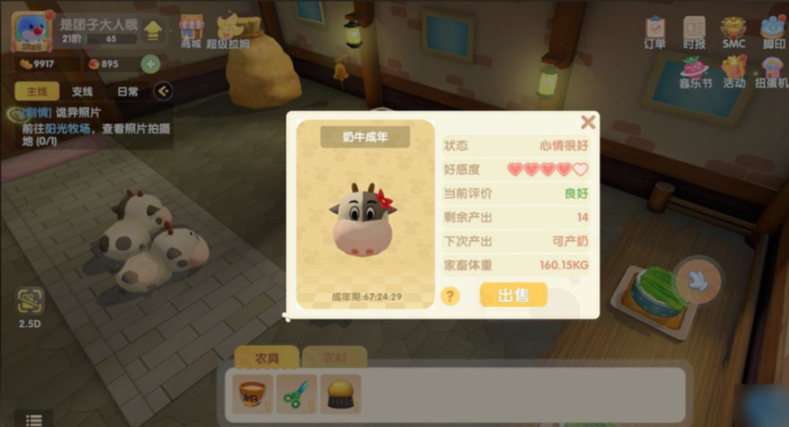 每个小屋最多养四只动物,超出的会暂存仓库停止生长。通过摇铃铛召回后,可以趁机调整饲养阵容,把成熟的动物换成幼崽优化产出效率。铃铛操作没有冷却时间,但频繁收放会影响动物心情,建议每天固定时间集中管理两次。