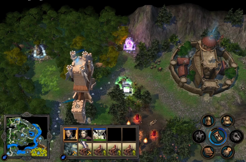 利用好传送门能节省大量时间,但记得先干掉另一边的守卫元素。打开传送门后可以用篷车快速运送部队,避免来回跑图耽误进度。如果中途有英雄阵亡,隔一周会出现在酒馆里重新招募,但尽量别让核心英雄倒下。最后决战时优先解决敌方远程单位,再用群体黑暗魔法削弱敌人,配合死亡化身逐个击破。