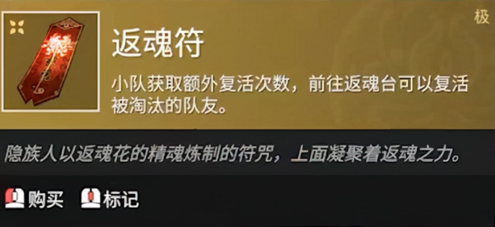 返魂符的用法稍微复杂一点,它只能在特定地点——地图上标记为金色莲花的返魂台使用。当你或队友阵亡后,带着返魂符靠近返魂台按住交互键就能复活。返魂符数量有限,整局游戏只有六张,通常藏在空投或货郎那里,所以前期尽量多攒钱买符。复活后你会失去原有装备,所以最好提前在返魂台附近藏好备用武器和护甲,避免刚起来又被秒杀。