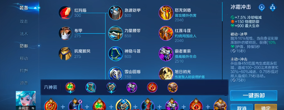 首先辅助装备推荐选择近卫荣耀,它能给周围队友增加防御属性,提升整个团队的坦度。鞋子方面通常选择抵抗之靴,这能让你在面对敌方控制技能时更加从容。接下来圣杯几乎是必出的,它为朵莉亚提供了充足的法力回复,保证你可以不间断地使用一二技能进行消耗和治疗。接着做出极寒风暴,这件装备提供的物理防御、冷却缩减和被动减速效果都非常契合肉装朵莉亚的需求。
