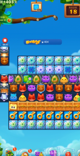 拿到钥匙并激活魔法石后,得赶紧消除上方冰块来点亮星星瓶,星星瓶注满能量后交换可以清屏,为解锁下方荷塘区域创造机会。后期阶段要注意合理分配剩余步数,别急着清理单一目标,多观察整体布局变化。如果有道具像强制交换或加步道具,可以配合使用提高过关几率,但别浪费在没必要的地方上。遇到障碍物别慌张,比如石门翻转时要优先处理露出的雪块,避免等待重复翻转耗费步数。银币和小黄鸡的收集主要靠特效连锁,所以每一步都尽量制造连消机会,让动物自动填补空位。