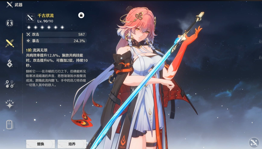 武器方面,五星千古洑流能显著提升攻击力与技能效果,是漂泊者湮灭的优先选择;四星武器中不归孤军或飞景可作为实用替代,提供稳定的暴击或攻击加成。声骸搭配推荐无妄者或无冠者套装,COST配置以43311为宜,主词条优先选取暴击率、暴击伤害及湮灭伤害加成,副词条则侧重普攻伤害、攻击力与共鸣解放伤害,以优化角色的综合输出能力。