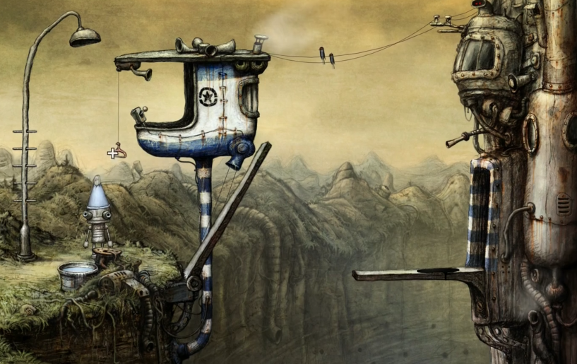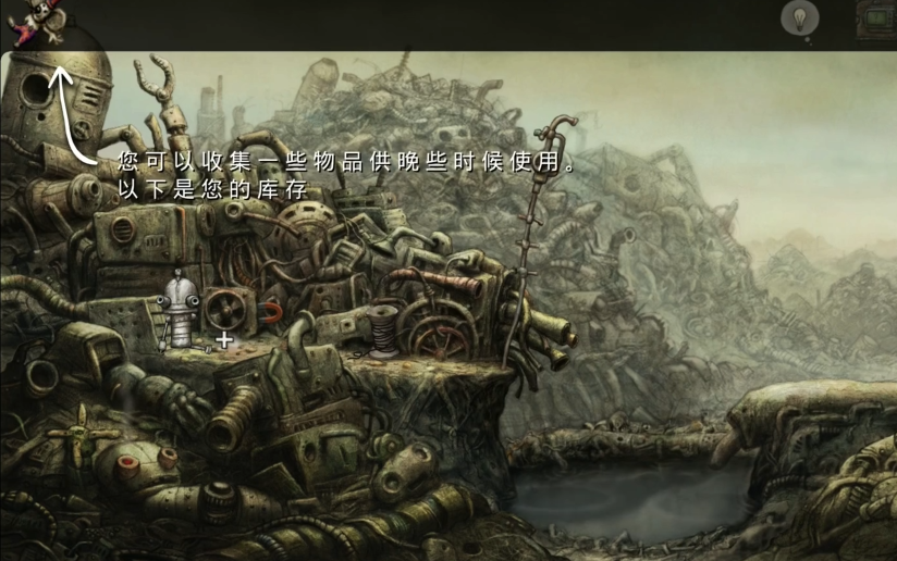 第一关的关键是帮小机器人找回身体部件并顺利通过障碍。一开始你会看到一个浴缸,点击它两次,机器人的身体会掉下来,再点击头部让它们组合在一起。这时候小家伙还缺一条腿和一只手,别着急,旁边有只小老鼠会帮忙。拉长机器人的身体,拿到高处的布娃娃交给老鼠,它就会帮你找回一条腿。有了腿就能走路啦,接下来去拿磁铁和旁边的电缆线,组合成简易钓竿。