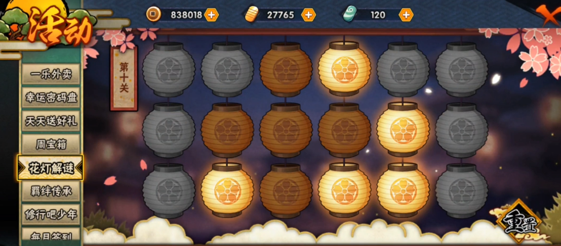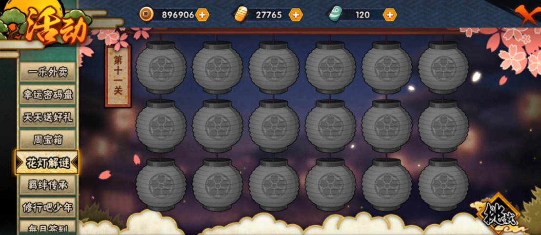 火影忍者手游的花灯解谜活动是一个需要玩家运用逻辑思维和观察力的挑战性玩法。该活动共有30个关卡,每个关卡都需要通过点击花灯来改变其明暗状态,最终点亮所有花灯即可通关。花灯的初始状态分为明暗两种,点击某一盏花灯会使其自身及相邻的上下左右花灯状态反转。通关后可获得相应奖励,累计通关一定层数还能解锁成就奖励。