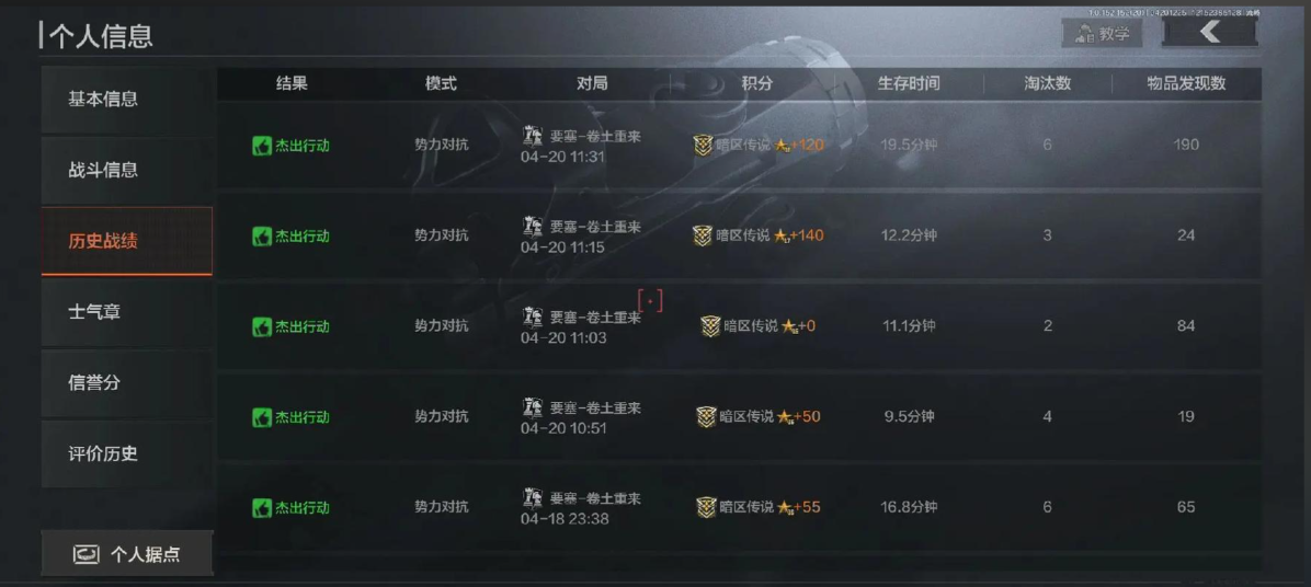 开启段位积分后,每局的表现都会影响积分变化。存活时间越长、淘汰对手越多、整体表现越出色,获得的积分就越高。积分积累到一定数量就能升星或升段,段位从低到高分为新锐、尖兵、精英、专家、大师、王牌和暗区传说七个等级。如果对局中表现不佳或者撤离失败,也会扣除少量积分,所以咱们得稳扎稳打,别太冒进。