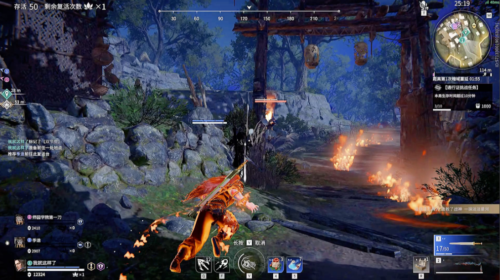 战斗技巧上,不同角色需要掌握特定的连招顺序和技能释放时机。例如宁红夜的F技能踢击可打断敌人蓄力,接V技能奥义实现群体控制;迦南则需利用隐身绕后,配合长剑剑气远程消耗。通用操作如振刀、闪避、钩索需与角色技能结合,例如特木尔的风之牢笼可封锁走位,为队友创造输出环境。地形利用和资源点争夺也是关键,高资源区如天人城适合快速发育,但需警惕埋伏。
