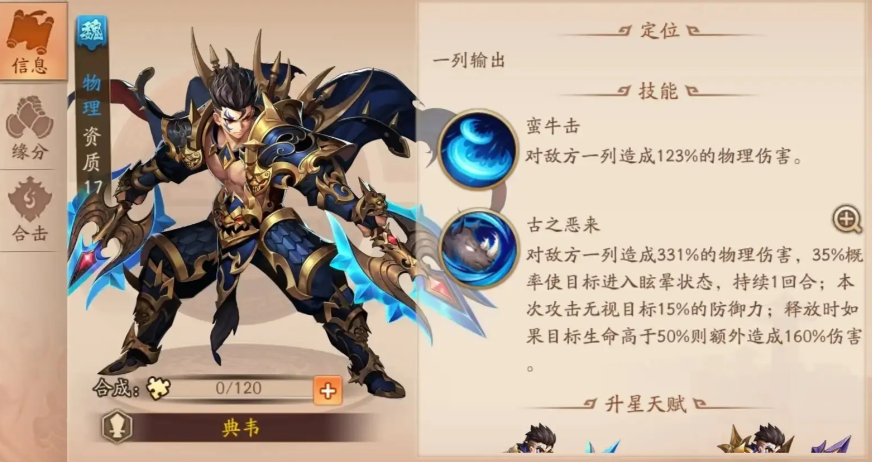 张辽作为魏国核心输出武将,其高爆发与群体伤害能力在阵容搭配中具有战略意义。该武将的十字型攻击范围能覆盖敌方多单位,配合额外暴击率与命中率加成的特性,使其成为当前版本中值得重点培养的对象。在实战中,张辽的站位通常选择一号位或三号位,以确保其技能能优先触发并压制敌方关键目标。