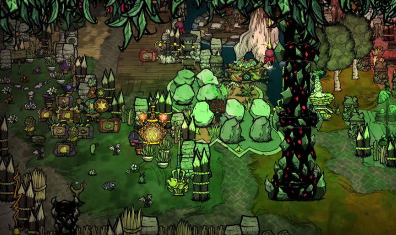 建家布局需要提前规划,确保灭火器和避雷针覆盖整个基地,避免夏季自燃或雷击引发火灾。烹饪区建议集中放置几口锅,搭配冰箱形成高效食物生产线。移植区可以划分浆果丛、草丛和树枝区,定期施肥保证产量。箱子和晾肉架等设施要根据玩家数量合理安排,多人游戏时可以多设置一些锅和储物设备,方便协作使用。植被移植比如草和树枝能提供持续资源,但要确保有足够的肥料供应,避免资源短缺影响生存效率。