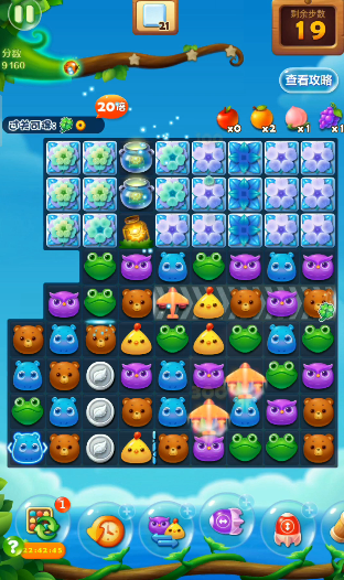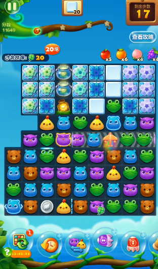 进入关卡后,首要任务是突破棋盘中间顶部的雪块封锁,右侧区域会随机生成基础特效,优先将这些特效向左移动,精准打击中间上层的雪块,打通后能让上方动物顺利掉落,形成更多消除组合。此阶段无需理会中间的章鱼,专注收集银币即可,银币收集到一定数量章鱼会自动离开,同时在消除过程中要重点激活棋盘内的贝壳,贝壳触发后会生成水母宝宝,这是通关的关键道具。水母宝宝出现后,要及时移动至银币掉落的路径上,有效阻挡银币持续下落,避免银币占据消除空间、干扰操作节奏。