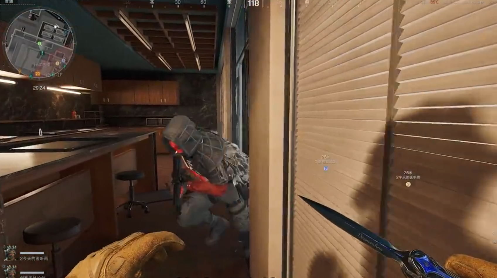 主武器选AUG突击步枪,稳定性强、弹药容量大,适合中距离架点与持续射击,改装时搭配堡垒水平补偿器、大弹鼓与红点瞄准镜,兼顾压枪手感与火力续航。PKM轻机枪则适合纯防守架点,125发弹容量能提供长时间压制火力,配件选扩容弹箱、镂空握把与脚架,提升射击稳定性。副武器M870霰弹枪用于近距离自保,应对敌方突脸或绕后突击。刀片刺网可部署在通道、doorway等位置,减速敌方步兵并限制移动,配合ADS近防系统形成双重防御。烟雾弹用于掩护队友转移、救援倒地队友或自身撤退,扔出后快速制造烟幕,干扰敌方瞄准与视野。